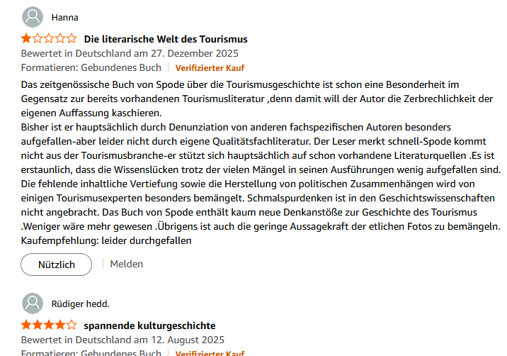 - Zur Geschichte des Tourismus. Eine Skizze der Entwicklung der touristischen Reise in der Moderne, Starnberg 1987.